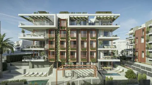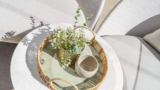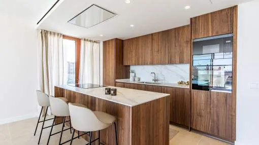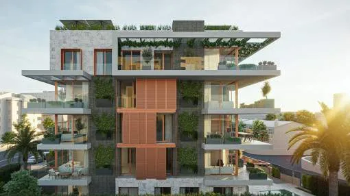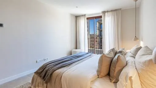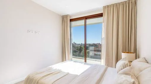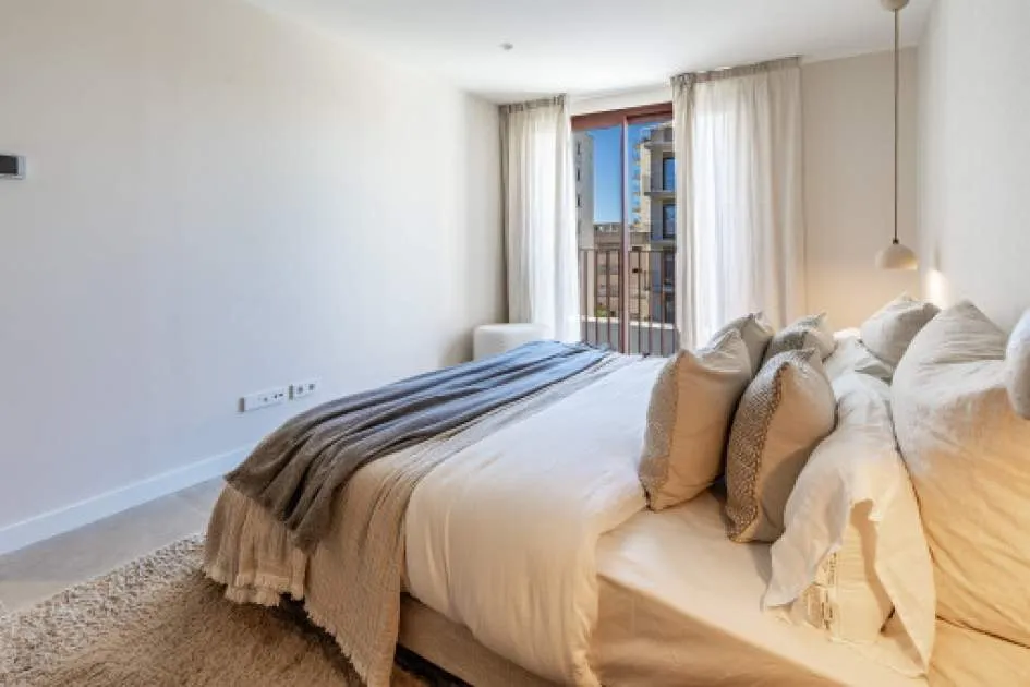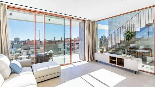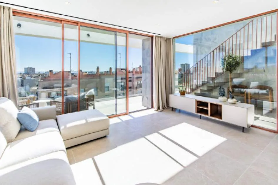 Lo más destacado de este ático son las amplias zonas exteriores. Ofrece una terraza de 58 metros cuadrados en el nivel de vida más una terraza privada de 107 metros cuadrados, con espectaculares vistas panorámicas de Palma y el mar más allá.
