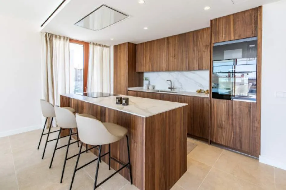 Este lujoso ático con una superficie construida interna de 123 metros cuadrados dispone de 3 dormitorios, 2 baños, uno de ellos en suite, un aseo de invitados y un amplio salón/comedor con cocina americana.
