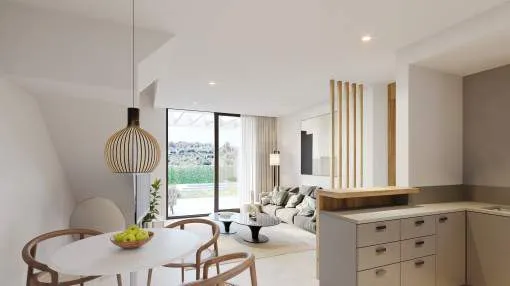 Descripción del inmueble: Este exclusivo proyecto de nueva construcción se presenta como un excepcional complejo residencial con un total de 159 elegantes casas adosadas y villas independientes, enclavadas en un amplio terreno de 62.000 metros cuadrados. El conjunto se complementa con un elegante club social, que redondea el concepto residencial comunitario a la vez que sofisticado. Situadas en un paisaje de incomparable belleza, las villas se caracterizan por un concepto arquitectónico centrado en la combinación armoniosa de espacios interiores y exteriores. Los amplios ventanales y los planos de planta bien pensados permiten que la luz mediterránea, la naturaleza y el relajado estilo de vida de la isla fluyan a la perfección en los espacios habitables. Cada villa cuenta con una parcela privada sin urbanizar, una amplia terraza, una plaza de aparcamiento exterior y la opción de instalar una pérgola y piscinas privadas para disfrutar plenamente del idílico entorno y del clima único de Mallorca. Con 2, 3 ó 4 dormitorios y diferentes planos de planta con una superficie habitable de hasta 150 metros cuadrados, estas propiedades son ideales para familias, parejas, amantes de la vida independiente, como casa de vacaciones de alta calidad o como vivienda versátil perfecta para trabajar a distancia. Las villas están equipadas con todo lo necesario para una vida cómoda y contemporánea. Las cocinas de alta calidad con muebles altos y bajos ofrecen un generoso espacio de almacenamiento y están equipadas con modernos electrodomésticos, como campana extractora, placa de inducción, horno y lavavajillas. La instalación de frío y calor garantiza un agradable clima interior y el máximo bienestar durante todo el año. Un servicio de lanzadera le llevará a la cercana bahía de Cala Romántica en un abrir y cerrar de ojos. Otras unidades de este proyecto: ReferenciaConstruidoDormitoriosPisoPrecio122632112 m²20€ 399.000,- 122632A118 m²20€ 408.000,- 122632B120 m²20€ 421.000,- 122632C192 m²30€ 674.000,- 122632D238 m²40€ 849.000,- 122632E154 m²30€ 503.000,- 122632F241 m²20€ 754.000,- 122632G155 m²30€ 547.000,- Lugar & alrededores: Cala Romantica - Una bahía que hace honor a su nombre. Idílicamente situada con una brillante playa de arena blanca, brillantes aguas cristalinas de color turquesa e incrustada entre rocas boscosas. Imágenes que casi reflejan el ambiente caribeño. El bonito pueblo, con muchas calles bordeadas de plantas, cuenta con pequeños y manejables complejos vacacionales y edificios de villas privadas. Unos pocos restaurantes y bares ofrecen delicias mediterráneas y refrescos a sus huéspedes. La ubicación es ideal entre los encantadores pueblecitos portuarios de Porto Cristo y Portocolom. Típicos pueblos mallorquines con pequeñas tiendas que invitan a ir de compras o a cenar en los numerosos y acogedores restaurantes a lo largo de los paseos del puerto.