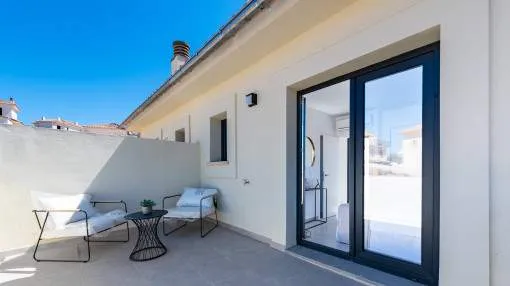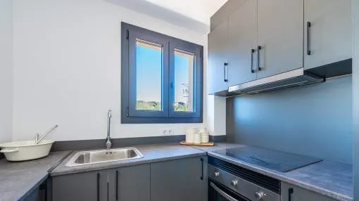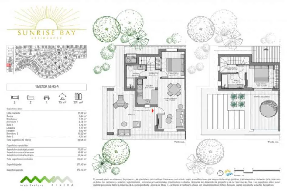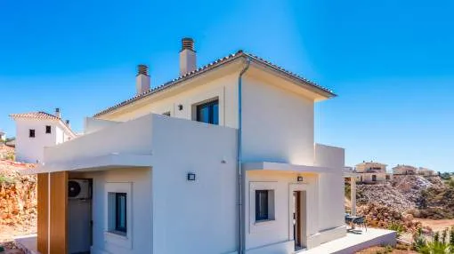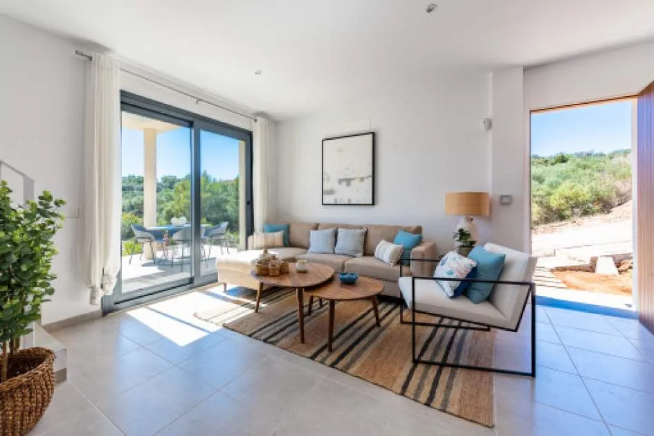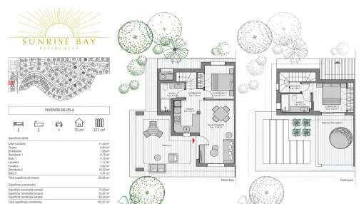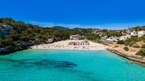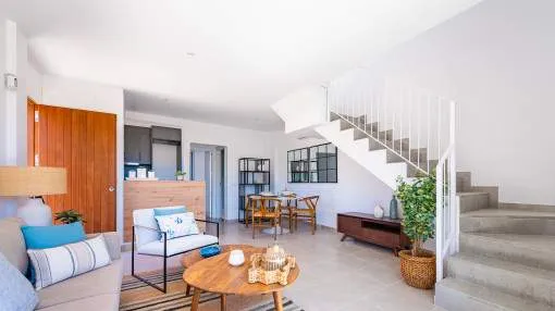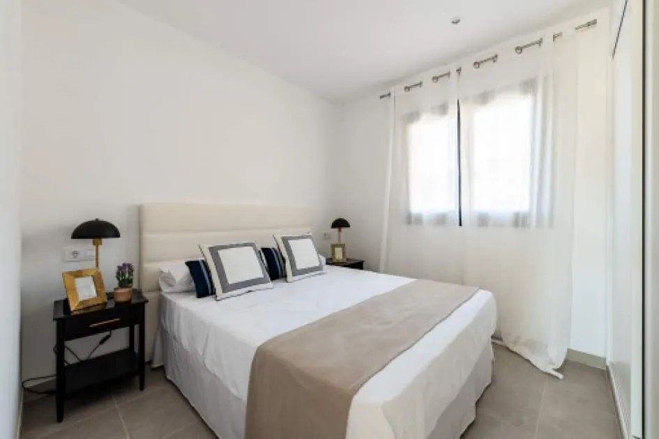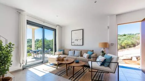 Descripción del inmueble: Esta moderna casa adosada para primera ocupación se encuentra dentro de una espaciosa y sofisticada residencia donde podrá disfrutar de instalaciones y servicios de ocio compartidos. Hay un servicio de transporte a la cercana y hermosa playa de Cala Romántica, varias zonas de piscina, zonas de bienestar con sauna, gimnasio o cine y un pequeño bar. Bajo el lema "Todo puede, nada debe", habrá algo para todas las necesidades individuales para hacer de cada estancia aquí un momento culminante para sus residentes. La propiedad en sí tiene su propia parcela de unos 371 metros cuadrados. La superficie construida de unos 112 m2 se distribuye en 2 plantas. A la planta baja se accede a través de una terraza parcialmente cubierta. El amplio salón diáfano con zona de comedor y cocina totalmente equipada le da la bienvenida. Al lado hay un dormitorio con armario empotrado y cuarto de baño. Un pequeño lavadero independiente ofrece más comodidad. Desde el salón, una escalera conduce a la primera planta, donde se encuentra el segundo dormitorio, también con baño y armario empotrado. Dos pequeñas terrazas soleadas, en las que tendrá intimidad, le garantizan un maravilloso descanso. Equipamiento: - Aire acondicionado con función frío/calor - Opción: Suelo radiante en ambos baños y espejos retroiluminados - Preinstalación de domótica; control opcional de la iluminación y el aire acondicionado - Cocina totalmente amueblada y equipada con electrodomésticos Bosch/Siemens; electrodomésticos Neff opcionales - Ventanas/puertas exteriores de PVC o aluminio (rotura de puente térmico) incl. doble acristalamiento con cámara de aire - Sistemas de apertura de hojas correderas o abatibles Otras unidades de este proyecto: ReferenciaConstruidoDormitoriosPisoPrecio120109112 m²20€ 399.000,- 120109A112 m²20€ 399.000,- 120109B112 m²20€ 399.000,- 120109D112 m²20€ 399.000,- 120109G120 m²20€ 399.000,- Lugar & alrededores: Cala Romantica - Una bahía que hace honor a su nombre. Idílicamente situada con una brillante playa de arena blanca, brillantes aguas cristalinas de color turquesa e incrustada entre rocas boscosas. Imágenes que casi reflejan el ambiente caribeño. El bonito pueblo, con muchas calles bordeadas de plantas, cuenta con pequeños y manejables complejos vacacionales y edificios de villas privadas. Unos pocos restaurantes y bares ofrecen delicias mediterráneas y refrescos a sus huéspedes. La ubicación es ideal entre los encantadores pueblecitos portuarios de Porto Cristo y Portocolom. Típicos pueblos mallorquines con pequeñas tiendas que invitan a ir de compras o a cenar en los numerosos y acogedores restaurantes a lo largo de los paseos del puerto.