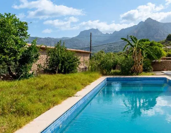 Esta espaciosa casa se encuentra en una parcela de aproximadamente 1.060 m², en una zona tranquila con mucha privacidad. Por su orientación, dispone de fantásticas vistas sobre todo el Valle de Sóller. Desde la Sierra de Tramuntana, que la envuelve con el Puig Major a su derecha, hasta divisar el mar en el horizonte.El edificio queda integrado, con un cierto corte moderno, aportando amplitud y luminosidad en todas sus estancias. Consta de dos niveles. En su planta baja, dispone de una zona de entrada acristalada con amplio guardarropía, habitación estudio, amplia lavandería-almacén, cocina abierta hacia la zona de comedor que a su vez forma parte del gran salón con chimenea. Los grandes ventanales comunican este espacio con la terraza principal. En el mismo nivel, lo que conforma el módulo de la derecha, se encuentra el aseo de invitados, dos dormitorios con su baño compartido y el dormitorio principal con vestidor, baño con inodoro independizado,