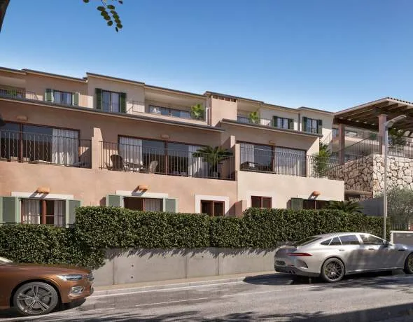 De estilo moderno pero mallorquín, se construirán 23 pisos de obra nueva y nueve casas adosadas en las afueras del pueblo. El complejo dispondrá de piscina y jardín comunitarios y de numerosas plazas de aparcamiento para todos.