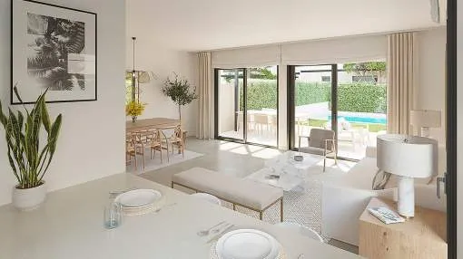 La arquitectura de estas viviendas se ha trabajado en detalle para combinar la máxima funcionalidad con un diseño exquisito. El interior y el exterior forman un "diálogo" en el que la luz natural, los grandes espacios abiertos y la integración de las zonas exteriores en las estancias principales son el protagonista.