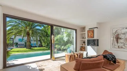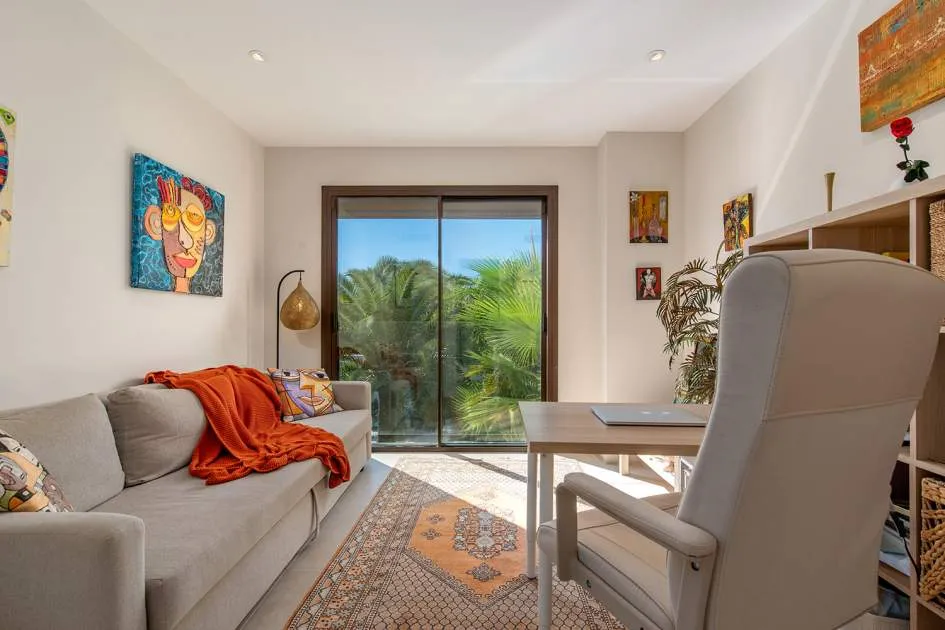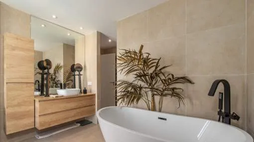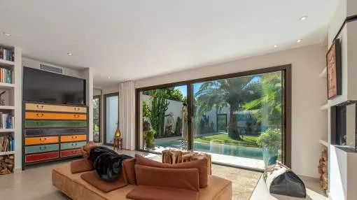 Situada en una de las zonas más populares de Puig de Ros, a pocos minutos a pie del exclusivo Mhares Beach Club, esta excepcional casa adosada combina un diseño moderno con el máximo nivel de confort. Una característica especial y el centro absoluto de la casa es el patio cuidadosamente diseñado, que crea un verdadero oasis de bienestar y ofrece privacidad absoluta. La casa, terminada en 2023, impresiona por su clara arquitectura, el uso de materiales de alta calidad y una estudiada distribución de las estancias. Aunque formalmente es una casa adosada, la propiedad transmite la sensación de una vivienda unifamiliar gracias a su espacioso diseño y al inteligente aprovechamiento de la parcela.
