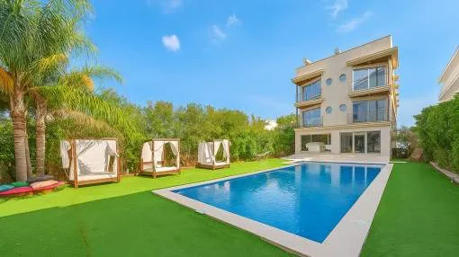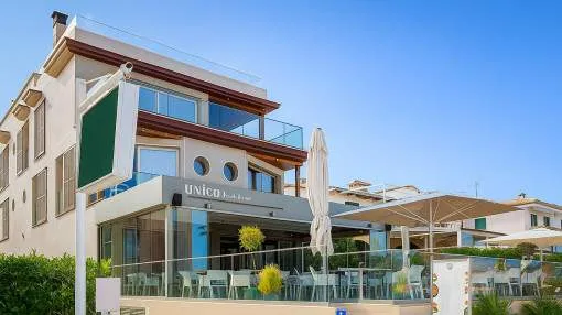 Descripción del inmueble: Situado directamente en el Paseo de Londres, frente al mar de Port de Pollença, este edificio representa una de las propiedades más exclusivas del norte de Mallorca. Construido en 2017 y actualmente en proceso de modernización integral, combina arquitectura contemporánea, elegancia mediterránea y un excelente potencial de revalorización en una ubicación inmejorable. Sobre una parcela de unos 959 metros cuadrados, la propiedad ofrece una superficie construida de aproximadamente 1.000 metros cuadrados con 7 viviendas de lujo, entre ellas un espectacular ático con piscina privada y vistas al mar. En la planta baja se encuentra un local de unos 250 metros cuadrados alquilado a un restaurante de prestigio con contrato de 20 años y una renta anual de 75.000 €. El edificio dispone de diez plazas de aparcamiento cubiertas, ascensor, piscina y jardín comunitarios, gimnasio y trasteros. Una oportunidad irrepetible para inversores que buscan exclusividad, rentabilidad y valor en la costa mallorquina. Lugar & alrededores: Port de Pollença – donde el Mediterráneo muestra su lado más elegante Port de Pollença es uno de los lugares más bellos y auténticos del norte de Mallorca. Rodeado por las montañas de la Serra de Tramuntana, este elegante pueblo costero combina tradición marinera, ambiente internacional y una calidad de vida excepcional. A lo largo del Paseo de Londres se encuentran elegantes boutiques, restaurantes de alta gastronomía y cafés con encanto, donde se disfruta de la mejor cocina mediterránea e internacional frente a la bahía azul turquesa, repleta de veleros y yates privados. La oferta gastronómica de Port de Pollença es de las más destacadas de la isla, con restaurantes gourmet y sofisticados beach clubs. A pocos minutos se encuentra la famosa península de Formentor, con sus playas paradisíacas y miradores emblemáticos. Los alrededores de Port de Pollença destacan por sus fincas rurales convertidas en exclusivas residencias vacacionales, lo que otorga a la zona una atmósfera tranquila y distinguida. Port de Pollença atrae a un público cosmopolita y selecto: familias, navegantes, empresarios y amantes del mar procedentes de toda Europa. Británicos, escandinavos y alemanes han convertido este lugar en su refugio preferido. Con su excelente infraestructura, sus propiedades de lujo y su proximidad a Palma, Port de Pollença es uno de los destinos más deseados de Mallorca.