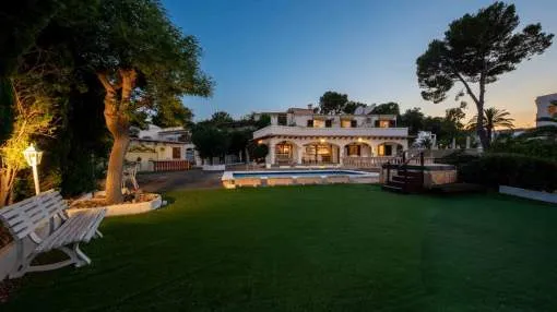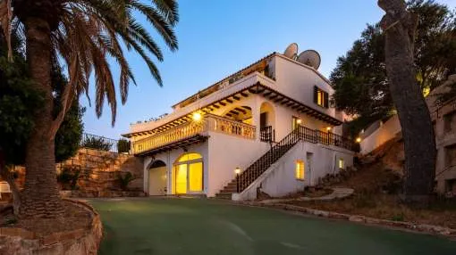 Una auténtica joya en Palmanova: esta excepcional villa orientada al sur se encuentra en una de las parcelas más codiciadas en lo alto de la colina, ofreciendo impresionantes vistas al mar y una ubicación inmejorable en el centro. A solo unos pasos de las playas de arena, tiendas y restaurantes, esta propiedad combina tranquilidad, comodidad y prestigio.