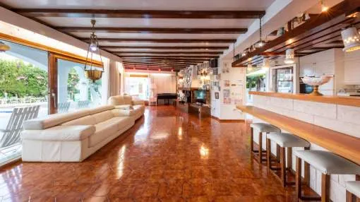 Situada en una tranquila calle residencial, la villa cuenta con una distribución generosa y una zona de salón, comedor y cocina de concepto abierto en la planta baja, ideal para recibir a familiares y amigos. Las amplias terrazas soleadas rodean una piscina privada y una zona de barbacoa cubierta, perfectas para disfrutar del estilo de vida mediterráneo durante todo el año.