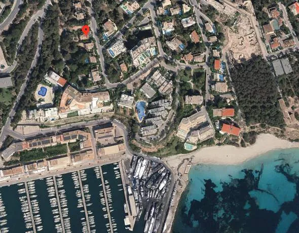 Esta parcela edificable destaca por su atractiva ubicación, a tan solo unos 100 metros de Puerto Portals y de la playa contigua. Los alrededores ofrecen una excelente infraestructura con boutiques de alta calidad, restaurantes de primera categoría y colegios internacionales. El centro de Palma se encuentra a unos 10 minutos y el aeropuerto a aproximadamente 15 minutos en coche.