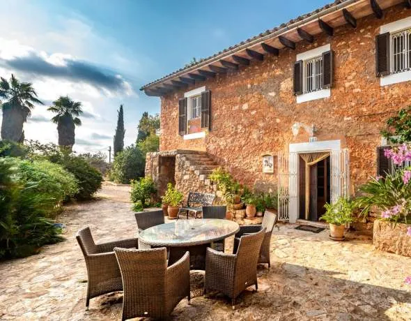 Esta finca rústica se encuentra en un idílico paisaje rural cerca de Son Mesquida, en un solar de 10.127 m² que está rodeado de típicas paredes de piedra.