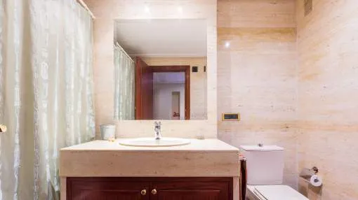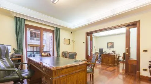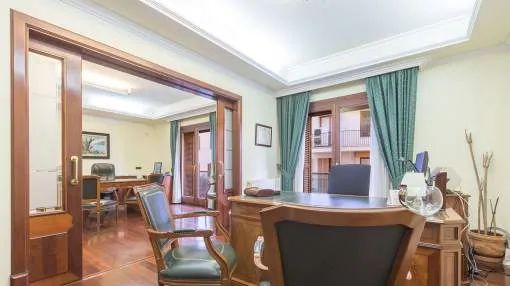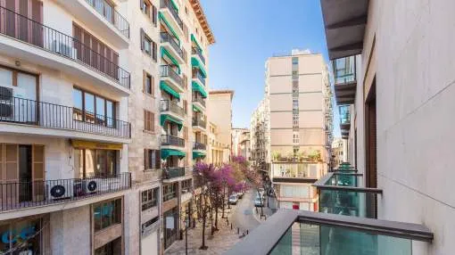 Este espacioso apartamento está situado en el corazón de Palma en una excelente ubicación, que no sólo ofrece muchas posibilidades para ir de compras y disfrutar de la ciudad a pie, sino que también se encuentra a pocos pasos del famoso Paseo Maritímo y del moderno barrio de Sta. Catalina con sus numerosos cafés, restaurantes, centros comerciales y el famoso mercado. La superficie habitable de 170 m² ofrece un salón-comedor y una cocina preinstalada. La propiedad tiene cuatro dormitorios espaciosos y luminosos, dos baños, uno de ellos en suite, un aseo de invitados y una coladuría. El edificio es moderno y tiene un acceso fácil mediante ascensor ; también existe la posibilidad de conseguir una plaza de aparcamiento en el garaje subterráneo comunitario.