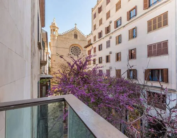 Este espacioso apartamento está situado en el corazón de Palma en una excelente ubicación, que no sólo ofrece muchas posibilidades para ir de compras y disfrutar de la ciudad a pie, sino que también se encuentra a pocos pasos del famoso Paseo Maritímo y del moderno barrio de Sta. Catalina con sus numerosos cafés, restaurantes, centros comerciales y el famoso mercado. La superficie habitable de 170 m² ofrece un salón-comedor y una cocina preinstalada. La propiedad tiene cuatro dormitorios espaciosos y luminosos, dos baños, uno de ellos en suite, un aseo de invitados y una coladuría. El edificio es moderno y tiene un acceso fácil mediante ascensor ; también existe la posibilidad de conseguir una plaza de aparcamiento en el garaje subterráneo comunitario.
