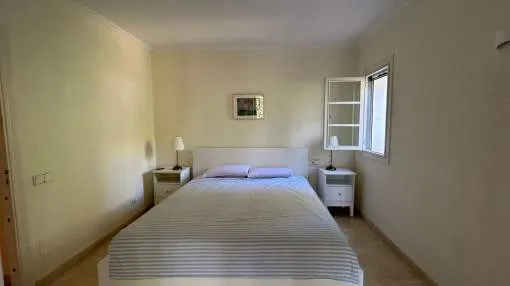 Disponible para alquiler de corta duración hasta mediados del verano de 2026, este elegante piso ofrece espléndidas vistas al campo de golf de Bendinat. Con una superficie construida de 125 m², cuenta con dos terrazas cubiertas, un luminoso salón-comedor con chimenea y una cocina totalmente equipada. La vivienda está completamente amueblada e incluye dos dormitorios dobles y un baño completo con ducha y bañera.