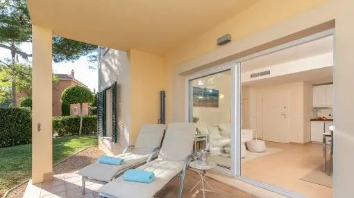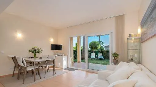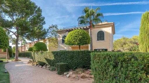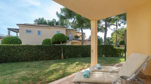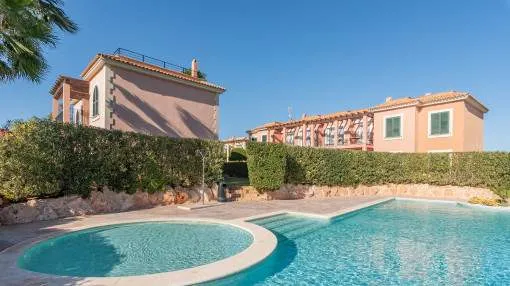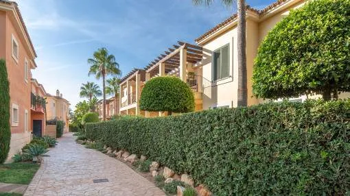 La vida mediterránea en una ubicación privilegiada: Este hermoso piso con jardín está situado en la popular costa sur de Mallorca y ofrece la máxima privacidad en una casa con sólo dos partes. Enclavado en una residencia de ensueño con una gran zona de piscina, se puede disfrutar de la paz y la exclusividad en igual medida.