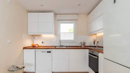 El piso de aproximadamente 75 metros cuadrados es luminoso y moderno. La pieza central es el salón-comedor de planta abierta con acceso directo al jardín privado y aislado. La nueva cocina americana está elegantemente integrada en el concepto de salón. Dos dormitorios, uno de ellos con baño en suite, y un cuarto de ducha adicional garantizan un alto nivel de confort.