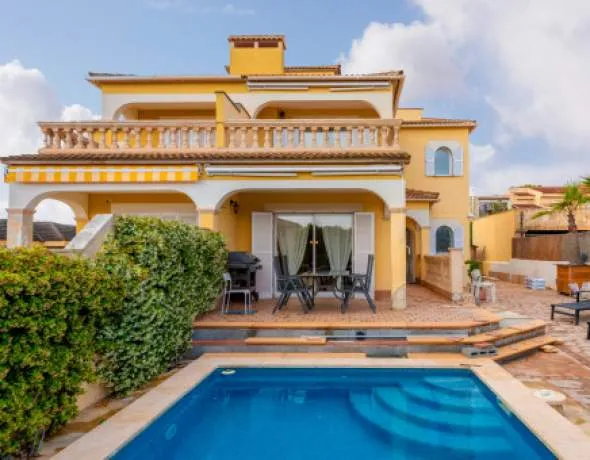 Casa adosada muy bonita y bien mantenida con piscina en la población costera de Bahía Azul.