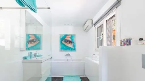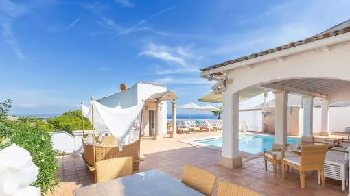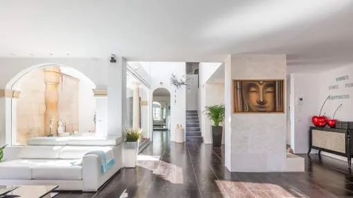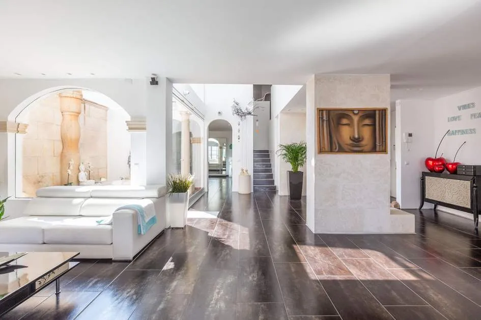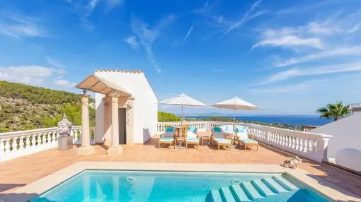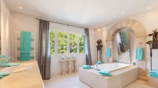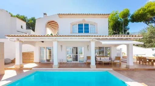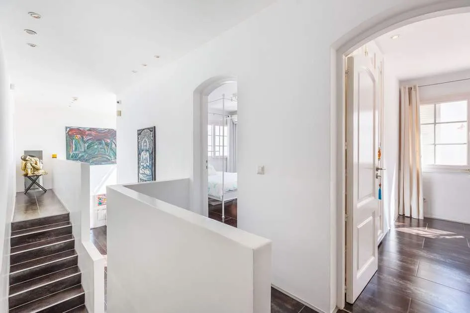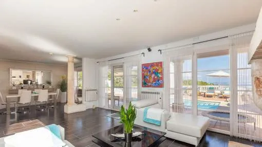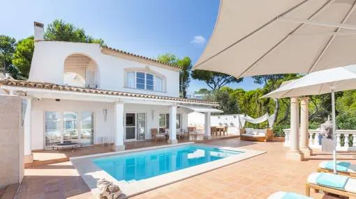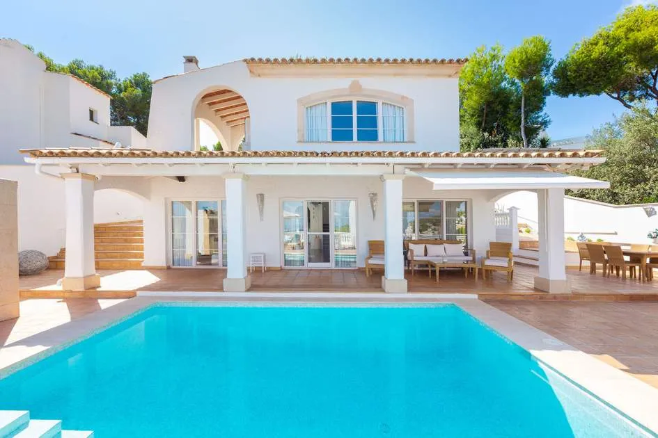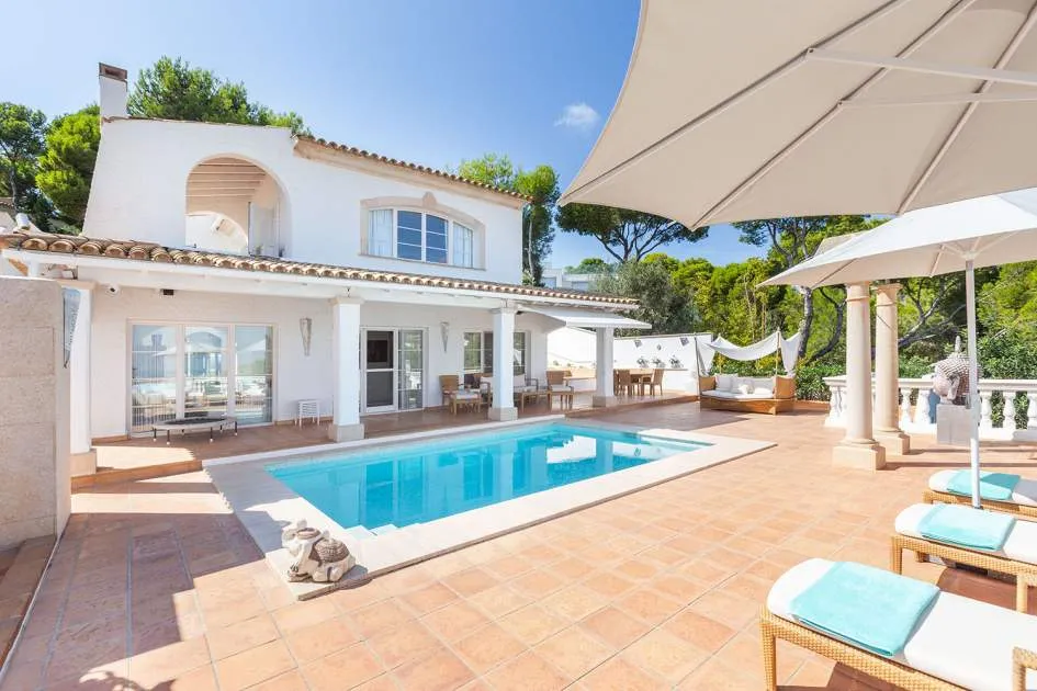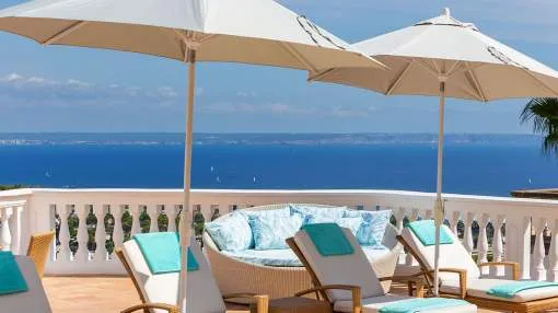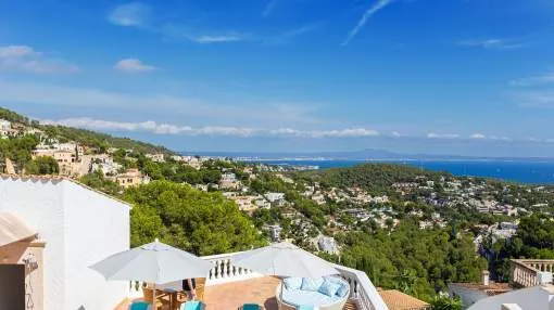 Esta villa de estilo mediterráneo se encuentra en las tranquilas colinas de Costa d’en Blanes, una de las zonas residenciales más codiciadas del suroeste de Mallorca. A solo unos minutos de Palma, su ubicación elevada permite disfrutar de amplias vistas al mar y la bahía de Palma, al tiempo que garantiza la máxima privacidad.