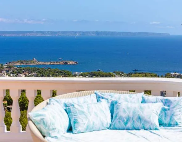 Esta villa de estilo mediterráneo se encuentra en las tranquilas colinas de Costa d’en Blanes, una de las zonas residenciales más codiciadas del suroeste de Mallorca. A solo unos minutos de Palma, su ubicación elevada permite disfrutar de amplias vistas al mar y la bahía de Palma, al tiempo que garantiza la máxima privacidad.