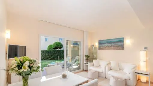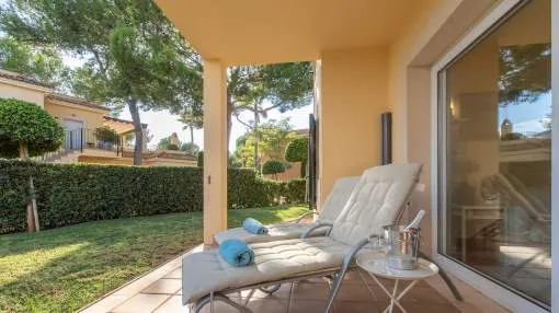 Este encantador piso en planta baja con jardín propio le espera en la soleada costa sur de Mallorca. El edificio consta de sólo dos unidades residenciales y por lo tanto ofrece un alto grado de privacidad. Enclavado en un complejo mediterráneo con una amplia piscina de agua salada y una exuberante vegetación, podrá disfrutar de paz y tranquilidad y de un estilo de vida incomparablemente relajado.