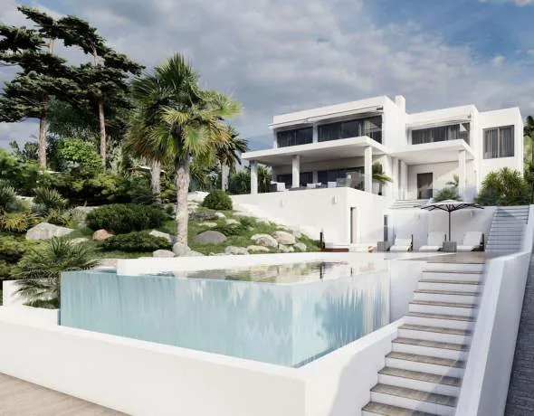 Este impresionante proyecto se realizará en una demandada zona residencial cerca del centro de Santa Ponsa al final de una calle tranquila. Varias playas, campos de golf y puertos deportivos están en las inmediaciones o a un corto trayecto en coche. La planta de entrada a nivel de calle comprende un amplio salón-comedor con acceso a una terraza cubierta con maravillosas vistas panorámicas al mar, una lujosa cocina de marca con coladuria, un dormitorio con baño en suite y un aseo. La planta superior alberga el amplio dormitorio con vestidor, baño y una terraza con fantásticas vistas y otros dos dormitorios con baños y terrazas. La planta inferior cuenta con varios trasteros y salas técnicas. En el exterior hay acogedores porches y terrazas con piscina y un hermoso jardín con riego automático. La propiedad también incluye dos garajes dobles.