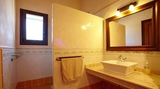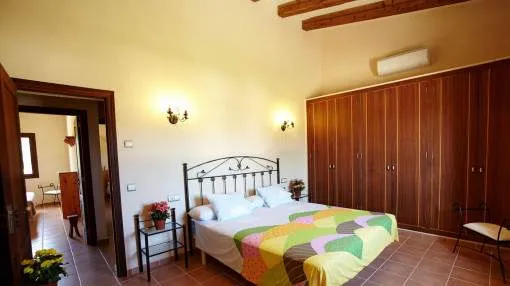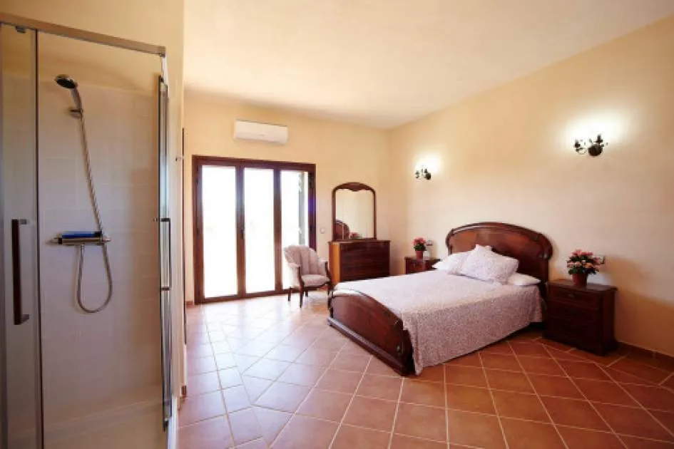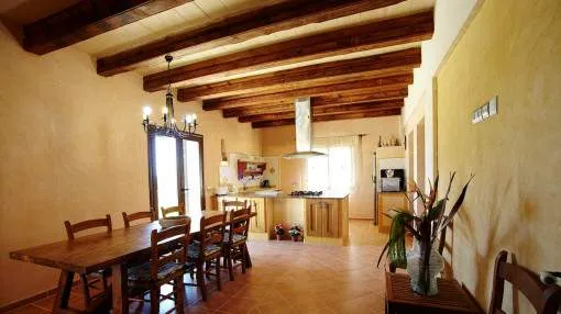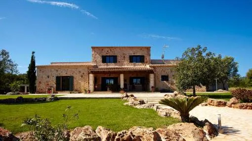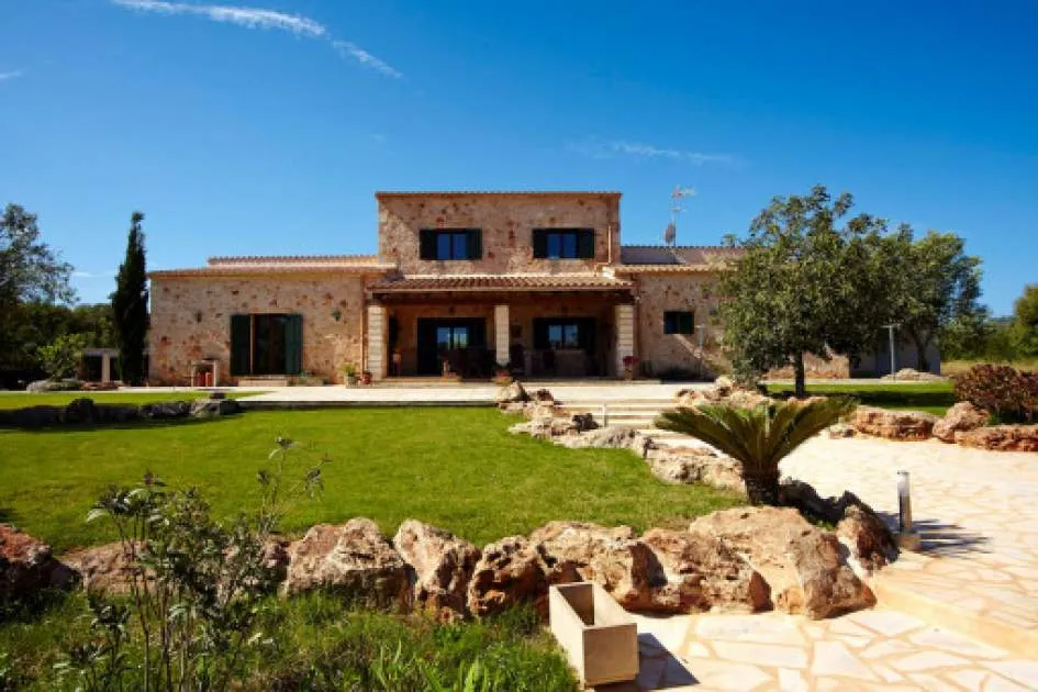 Details: In an idyllic location near Santanyí, surrounded by nature and just a few minutes away from beautiful sandy bays, this exclusive finca is the perfect retreat. Absolute tranquillity, plenty of privacy and luxurious living comfort characterize this property. The existing vacation rental license allows use for up to 10 guests and also makes the property extremely attractive from an economic point of view. The spacious plot of around 14,000 m² accommodates a house with approx. 280 m² of living space and a total of around 425 m² of usable space. The heart of the house is the spacious living area, which is accessible via the entrance hall and creates a warm, inviting atmosphere. Adjacent to this is the spacious, fully equipped kitchen with integrated dining area - ideal for those who value cooking and enjoying meals together. There are a total of 5 bedrooms on the first floor, including 4 with double beds and a further room with a single bed. All bedrooms are equipped with air conditioning and large fitted wardrobes. The underfloor heating installed throughout the house provides additional comfort. The upper floor is reserved for the largest bedroom. This has an en-suite bathroom, air conditioning and a private balcony with impressive panoramic views of the surrounding area. The layout over 2 levels guarantees a high degree of privacy. The outdoor area leaves nothing to be desired: A spacious swimming pool measuring approximately 7 x 12 meters invites you to relax, swim and linger. There is a large, covered terrace right next to the house as well as an additional bathroom with shower and WC. Around the pool, a covered lounge and several parasols provide pleasant shade on warm days. The water supply is provided by both a private well and the public network. Returns from holiday lettings: For initial orientation you can use the “Porta Holiday Returns Calculator” without obligation to calculate your potential returns from holiday letting. NB: Due to the current legal situation it is possible that in certain municipalities renting restrictions may apply, or new touristic licences may not be granted. Your Porta Mallorquina real estate consultant will be pleased to advise you whether the property you have chosen is affected. Go to Returns Calculator. Location & surrounding area: Santanyí is located in the attractive southeast of Mallorca and is known for its authentic Mallorcan charm. The town features traditional architecture, a popular weekly market and a wide selection of restaurants, cafés and boutiques. Numerous beautiful coves and sandy beaches such as Cala Santanyí, Cala Llombards and the Mondragó Natural Park are nearby. Palma Airport can be reached in approximately 45 minutes. Santanyí combines tranquillity, nature and Mediterranean lifestyle in one of the island’s most sought-after areas.