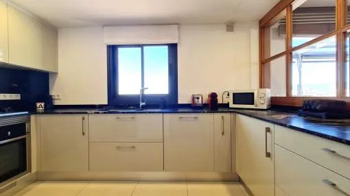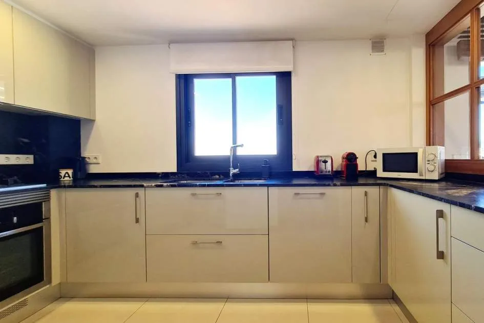 El apartamento consta de un espacioso y luminoso salón-comedor, conectado a una amplia terraza con mesa y sillas, sofá y toldo. La cocina moderna proviso con electrodomésticos, posee una ventana doble que da a la bahía. Tiene tres dormitorios cómodos y con armarios empotrados de madera, de los cuales el principal es en suite, con vestidor propio, vistas a la catedral y terraza adyacente, ideal para disfrutar de una taza de café nada más al despertarse.