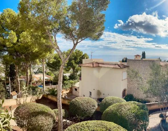 Esta encantadora casa destaca por su buena ubicación, hermosas vistas y diseño funcional. En el nivel superior hay un salón comedor abierto, así como 2 dormitorios y un baño. El nivel inferior es independiente e incluye un gran salón / zona de dormitorios, una habitación más pequeña y un baño. Amplias terrazas rodean todas estas zonas. La casa cuenta con un jardín mediterráneo bien cuidado, sala de lavandería grande, aire acondicionado frío / calor y una plaza de parking cubierto. Este inmueble se alquila amueblado.