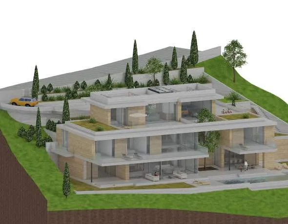 El precio de compra incluye un proyecto para la construcción de una villa moderna, lo que permite su pronta realización. El proyecto contempla una villa de tres plantas con más de 500 m² de superficie habitable, un concepto de espacio abierto, zona de piscina y varias terrazas, diseñada para un estilo de vida contemporáneo, luminoso y de máximo nivel.