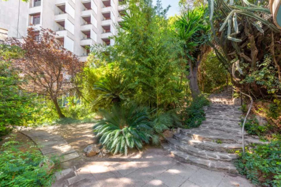 La comunidad posee unos jardines espectaculares, muy cuidados, especialmente la zona de la gran piscina, un oasis en medio del Paseo Marítimo.