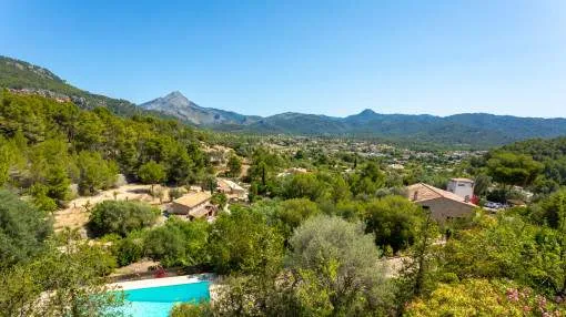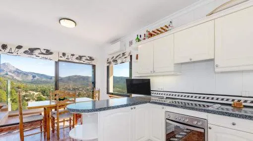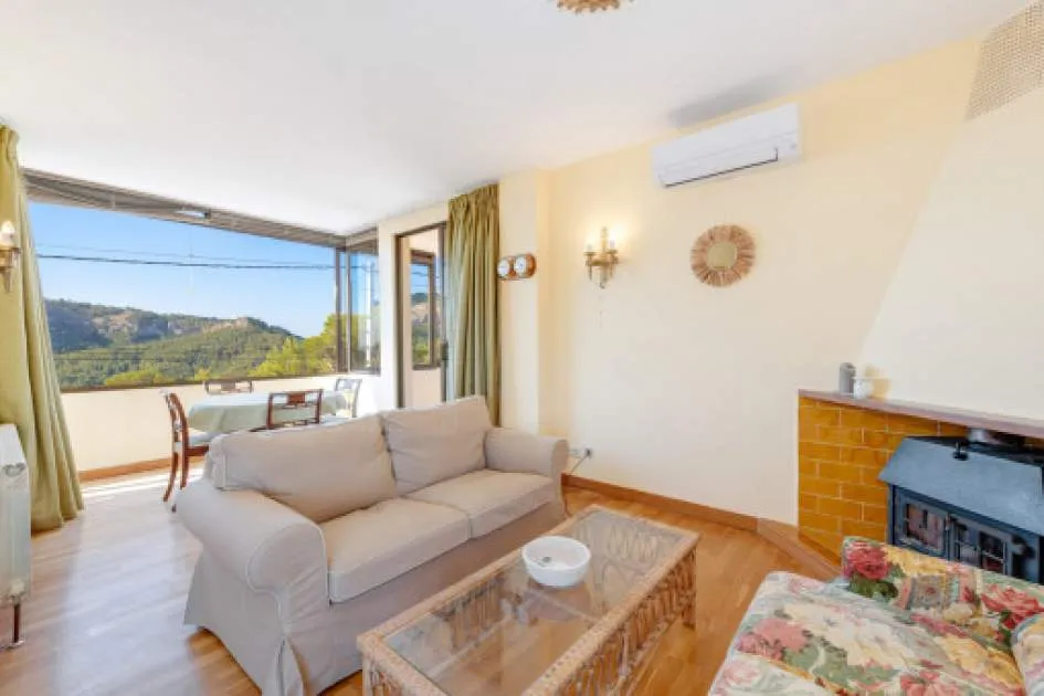 Descripción del inmueble: Escondida entre suaves colinas y una exuberante naturaleza, esta singular vivienda se encuentra en el pintoresco pueblo de Es Capdellà. A solo unos pasos del exclusivo Puerto de Andratx y de la impresionante costa suroeste de Mallorca, este encantador lugar combina tranquilidad, autenticidad y estilo de vida mediterráneo. La inigualable vista de 360 grados se extiende desde las imponentes cumbres de la sierra, pasando por el verde vibrante de los bosques circundantes, hasta el pintoresco pueblo y la brillante bahía de Camp de Mar y Paguera. Este entorno extraordinario invita a detenerse en las terrazas y disfrutar del momento. La propiedad necesita una renovación integral, pero sus múltiples posibilidades de diseño, las amplias zonas exteriores y las inspiradoras vistas panorámicas y al mar ofrecen un potencial excepcional para desarrollar ideas creativas y realizar sueños personales de vivienda. Con una superficie habitable de 214,45 metros cuadrados, la vivienda dispone de cuatro dormitorios y cuatro baños, dos de ellos en suite. La cocina está completamente equipada. El salón-comedor destaca por su abundante luz natural y sus vistas a la bahía. La piscina comunitaria ofrece un confort adicional y es ideal para relajarse y disfrutar del sol de Mallorca. Lugar & alrededores: Es Capdellà es un pequeño pueblo de 1.000 habitantes que pertenece al municipio de Calvià. Se encuentra al pie de la Sierra de Tramontana, a 115 m sobre el nivel del mar, con vistas al Puig de Galatzó (1.027 m) y ha conservado su encanto de tiempos pasados. Se fundó en el siglo XVII. Gracias a su ubicación especial, Es Capdellà es un lugar poco conocido. Ahora, personas que buscan algo peculiar, principalmente alemanes e ingleses, se han dado cuenta lo que el pueblo y la zona tienen que ofrecer y se han venido a vivir. También cabe destacar el Bar Nou y Es Moli, dos céntricos lugares de encuentro con comida mallorquina que atraen a los turistas. Las rutas que van de Capdellà a Puigpunyent, pasando por Galilea, y a Andratx y Paguera también son muy pintorescas. Es Capdellà está a pocos kilómetros (6-8 km) de la costa, donde las largas playas de arena y preciosas bahías le invitan a nadar. Aquí se ofrecen una gran variedad de actividades y hay una infraestructura muy buena. Palma está a unos 15 minutos y el aeropuerto a 20-25 minutos.