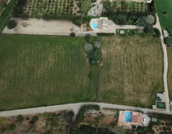 Terreno rústico en venta en Muro con una superficie aproximada de 25.664 m² y proyecto para la construcción de una vivienda unifamiliar aislada con garaje y piscina.