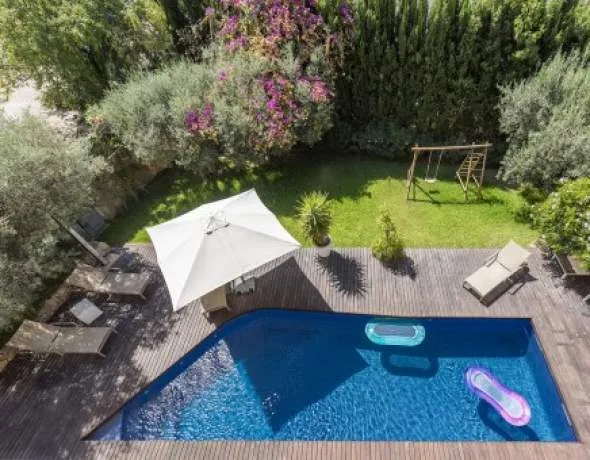 En las afueras del pueblo de Calvià, se encuentra esta villa de ensueño, rodeada de olivos, granados y un hermoso jardín, ofreciendo mucha tranquilidad y privacidad. Un paraíso para cualquier amante de la isla. Mención especial merece la vista al pueblo y la impresionante panorámica del mar y las montañas.