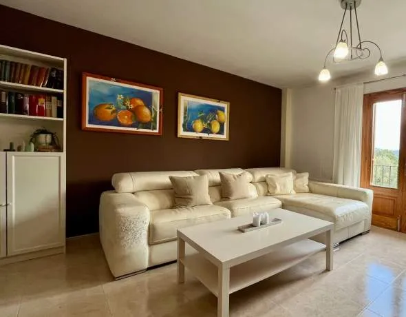 Este amplio apartamento se ubica en una zona tranquila de Campanet, en un edificio construido en 2002 con muy pocos vecinos.