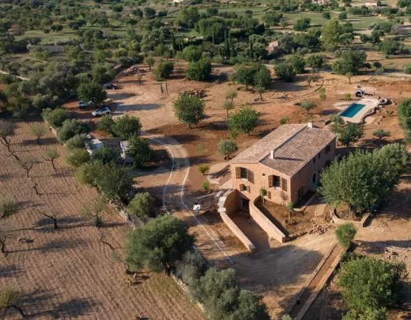 Situada en el corazón de Mallorca, en Alaró, esta nueva finca es un testimonio de la atemporal atracción de la arquitectura mallorquina, armonizando la tradición con la vida moderna. El proyecto se extiende por una vasta área de más de 16,000 m2, fusionando el encanto rústico con la elegancia contemporánea. En toda la casa, hermosas vigas de madera se extienden desde el techo, creando una atmósfera rústica y encantadora. Las habitaciones y dormitorios están diseñados con un carácter simple pero elegante, adornados en tonos naturales. Grandes ventanales iluminan los espacios, fusionando sin problemas el interior con la naturaleza circundante, proporcionando una notable conexión con el exterior. La extraordinaria escalera de caracol conecta con gracia la planta baja con el nivel superior.