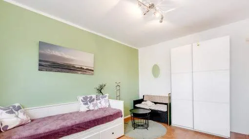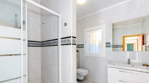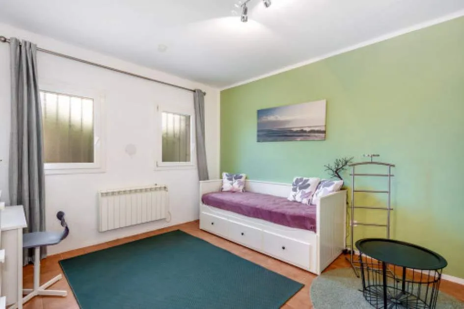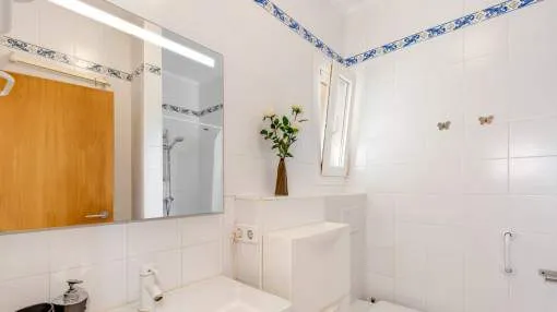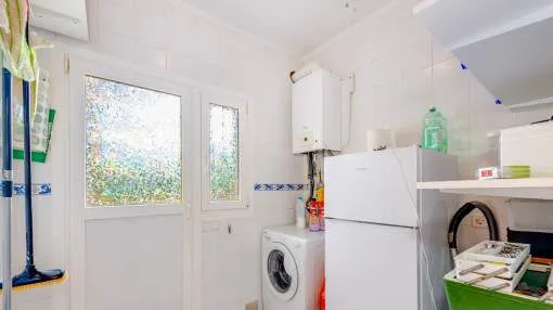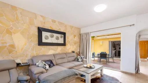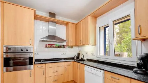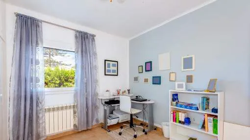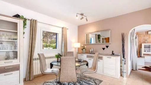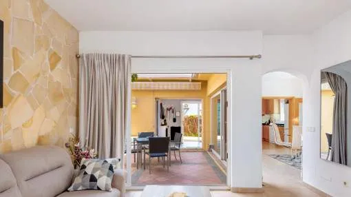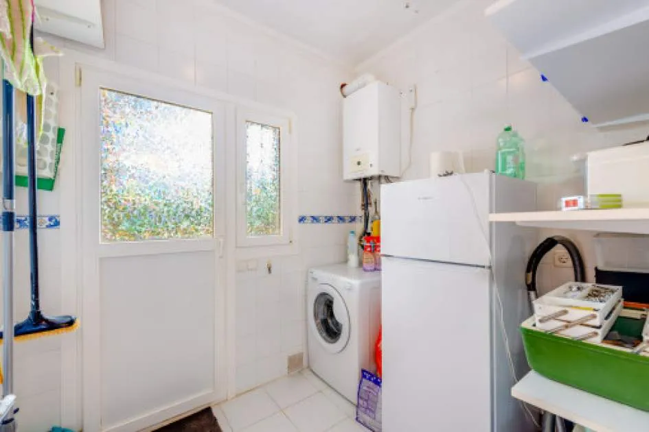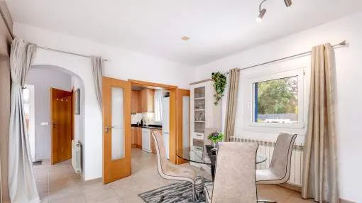 La vivienda cuenta con 3 dormitorios y 2 baños con ducha, uno de ellos en suite. El acogedor salón, con acceso directo al porche, crea un ambiente cálido y familiar, complementado por un comedor independiente. La cocina, muy luminosa, está totalmente equipada con electrodomésticos de marca y se comunica con una práctica lavandería.