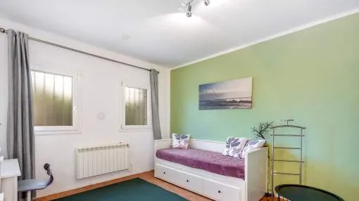 Este encantador chalet unifamiliar se asienta sobre una parcela de 600 metros cuadrados en un entorno residencial excepcionalmente tranquilo y destaca por su alta calidad de construcción según estándar alemán. Con una superficie habitable de unos 212 metros cuadrados, distribuida en una sola planta, la propiedad ofrece el máximo confort y, gracias a su diseño sin barreras arquitectónicas, resulta ideal también para usuarios de silla de ruedas.