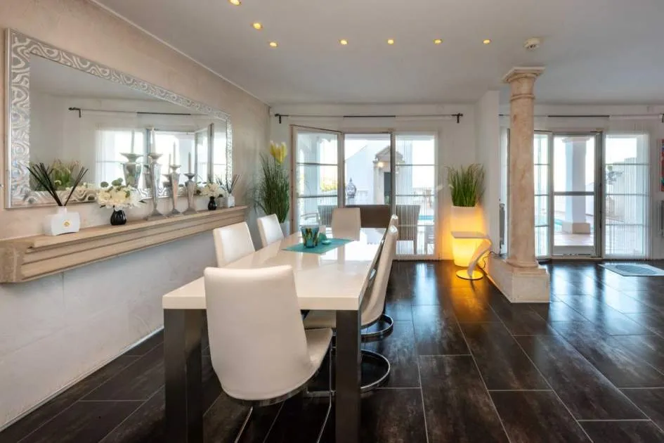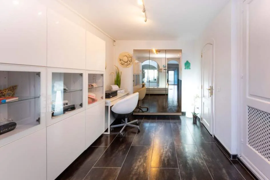 Con una superficie construida de aprox. 396 m² en una parcela de 1.071 m², la propiedad destaca por su distribución bien pensada con 5 dormitorios, 4 baños y un aseo de invitados. Un punto especialmente destacado es el apartamento de invitados independiente en su propia planta, ideal para visitas o como zona de vivienda autónoma para la familia.
