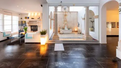 Cabe destacar la tranquila ubicación elevada, unida a una infraestructura ideal: a pocos minutos de Puerto Portals, colegios internacionales, campos de golf y la autopista con acceso directo a Palma y al aeropuerto.