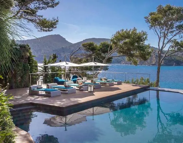 Con vistas a las aguas azul turquesa de Camp de Mar y el mar abierto más allá, enmarcada por los pinos mediterráneos, ofrece lo último en relajación.