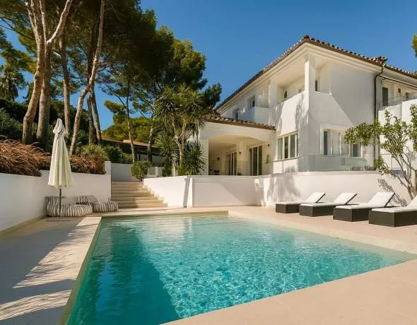 La villa incluye también todas las comodidades modernas, como aire acondicionado, calefacción central y un garaje privado. Su ubicación es excepcional: a pocos pasos de la playa, del exclusivo puerto deportivo Port Adriano y de una amplia selección de restaurantes, cafés y servicios. Además, cuenta con excelentes conexiones de transporte que permiten un fácil acceso a Palma y al resto de la isla.