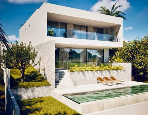 Esta exclusiva villa en la costa suroeste de Mallorca se encuentra actualmente en la primera fase de construcción y destaca por su ubicación excepcional, a solo unos 100 metros del prestigioso Portals Nous y una playa. La propiedad combina un concepto arquitectónico moderno con un alto nivel de privacidad y ofrece unas impresionantes vistas panorámicas a las montañas circundantes, así como vistas parciales al mar desde la planta superior y el solárium.
