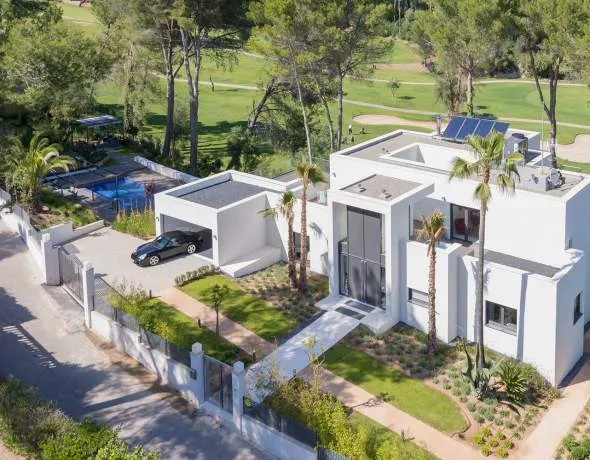 Ubicada en una de las zonas residenciales más exclusivas de Mallorca, justo al lado del prestigioso campo de golf Son Vida, esta moderna villa de lujo se encuentra en una parcela de aproximadamente 2.000 m² y ofrece mucha privacidad. Tiene todo confort de vida contemporáneo, acabados elegantes y una tecnología doméstica de última generación.