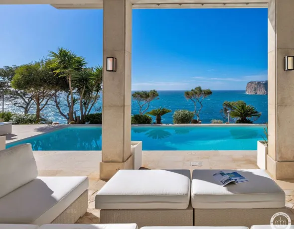 Esta excepcional villa en la bahía de Cala Llamp ofrece impresionantes vistas panorámicas al mar y un refinado estilo de vida mediterráneo en una ubicación privilegiada en segunda línea de mar. Situada en una parcela de aprox. 1.150 m² con unos 465 m² de superficie habitable, la propiedad combina arquitectura moderna, materiales naturales e interiores luminosos y elegantes.