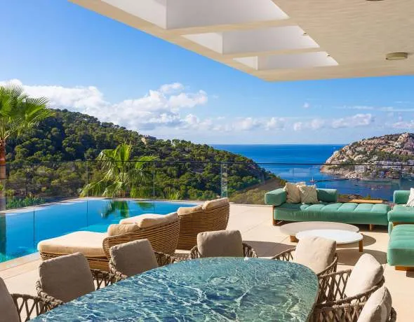 Esta exclusiva villa orientada al oeste se encuentra en una parcela de 1.250 m² en una zona residencial privilegiada sobre el puerto natural de Port Andratx y ofrece unas impresionantes vistas al mar. Enclavada en el pintoresco paisaje costero, esta zona ofrece el equilibrio perfecto entre la tranquilidad y un estilo de vida lujoso cerca del puerto.
