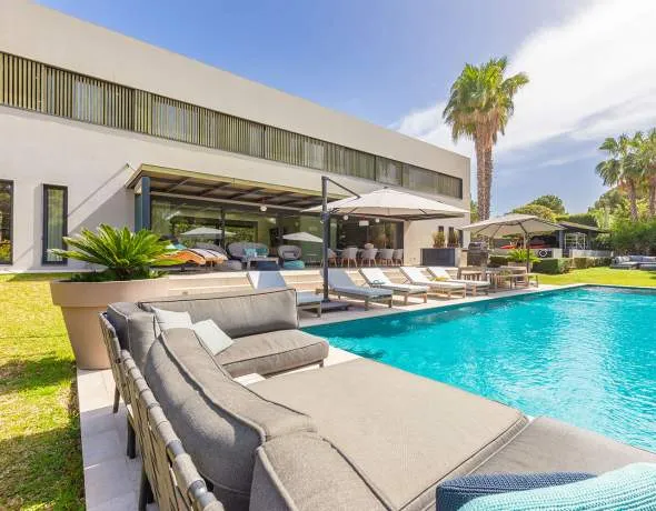 Esta moderna y luminosa villa está situada en una de las zonas residenciales más exclusivas de Santa Ponsa, en una ubicación tranquila, junto a una zona verde, pero a solo unos minutos a pie del Club Náutico y a menos de dos kilómetros del centro. Varias playas de arena, prestigiosos campos de golf y otros puertos deportivos se alcanzan en pocos minutos en coche. Gracias al acceso cercano a la autopista, la conexión con Palma, el aeropuerto y todo el suroeste de la isla está perfectamente garantizada. Santa Ponsa también ofrece una infraestructura excelente con numerosas opciones de compras y ocio.