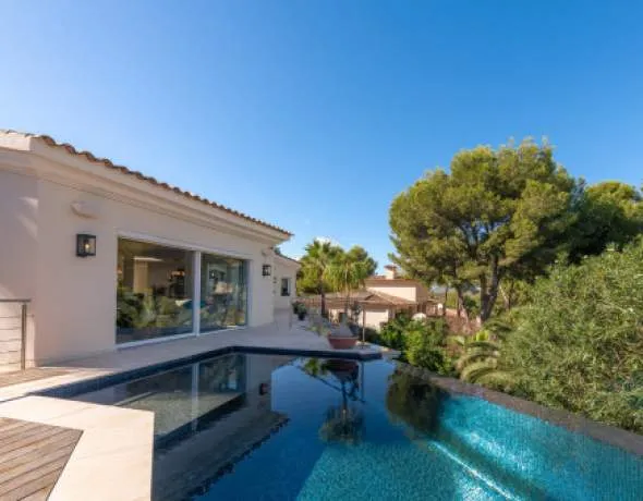 Bienvenido a la villa de sus sueños en Nova Santa Ponsa, Calvià, una de las zonas residenciales más exclusivas del suroeste de Mallorca. El tranquilo barrio de villas goza de una ubicación elevada con hermosas vistas de los alrededores, así como la proximidad a Port Adriano, campos de golf y restaurantes de primera clase. Privacidad, confort y la mejor infraestructura se combinan aquí.